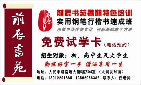 前辰书苑所有学员一至三级免考级辅导费,学制一年包三级通过。