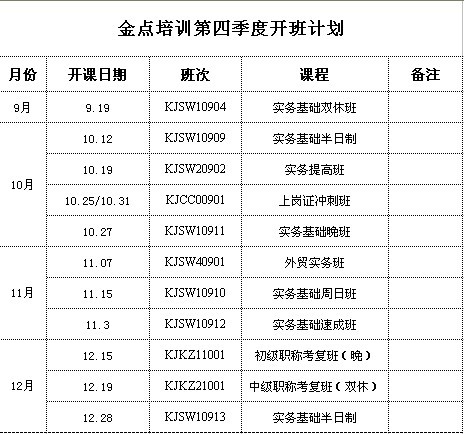南通金点培训第四季度开班计划