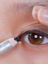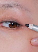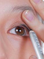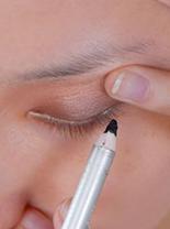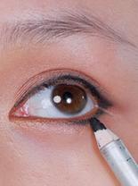 稍稍提拉眼皮露出眼头位置,顺着眼头的弧度,用眼线笔稍微勾勒一下,也可适当延伸出一点,会使眼睛看起来长一些。