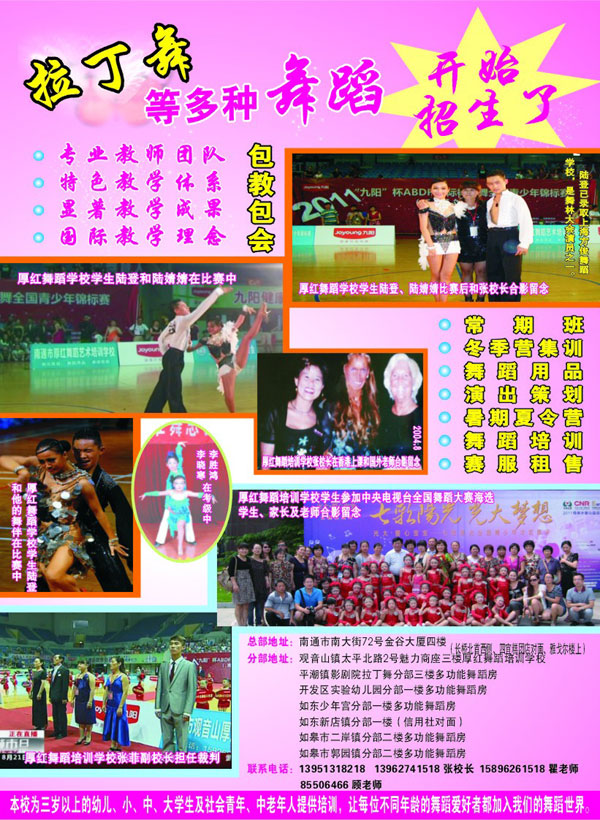 南通厚红舞蹈学校拉丁舞等各舞种上课时间安排